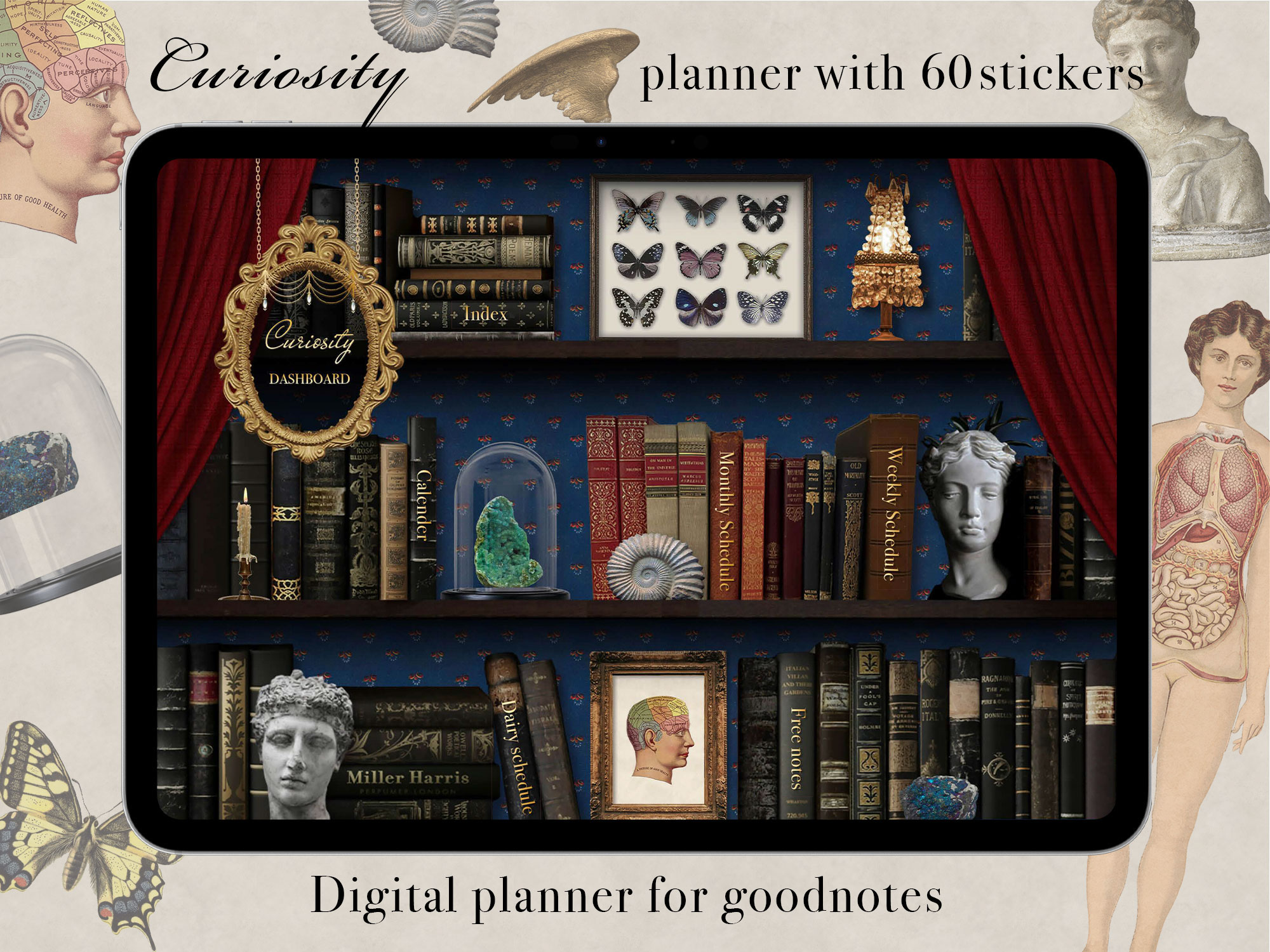 CuriosityはGoodnotesで使えるデジタルプランナーのPDFとデジタルステッカー60枚のセットです。