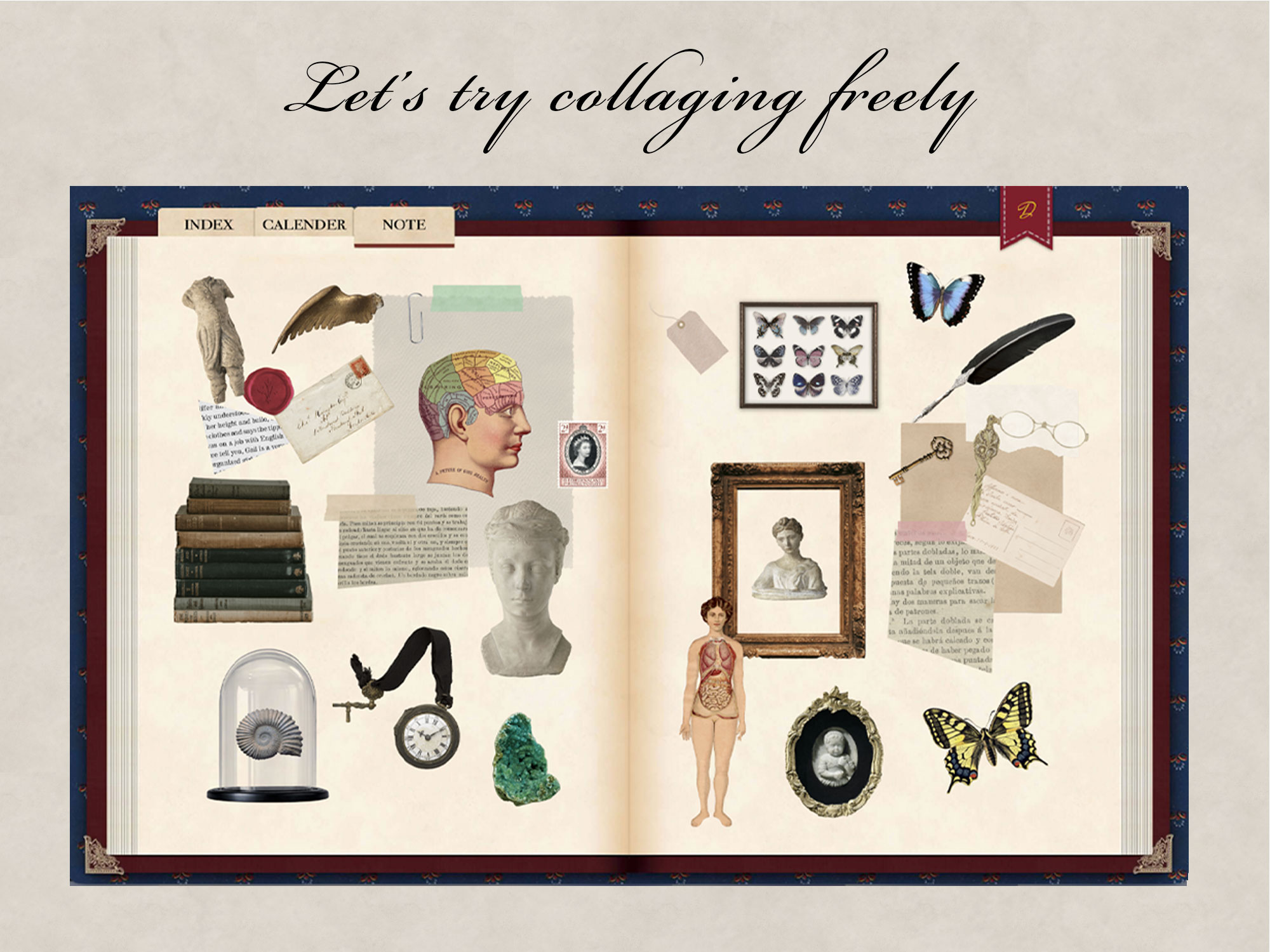 フリーノートを含む434ページのPDF(各ページへのハイパーリンク付き)、Curiosityの世界観に最適なコラージュなどを楽しむことができるデジタルステッカー60枚が含まれています。